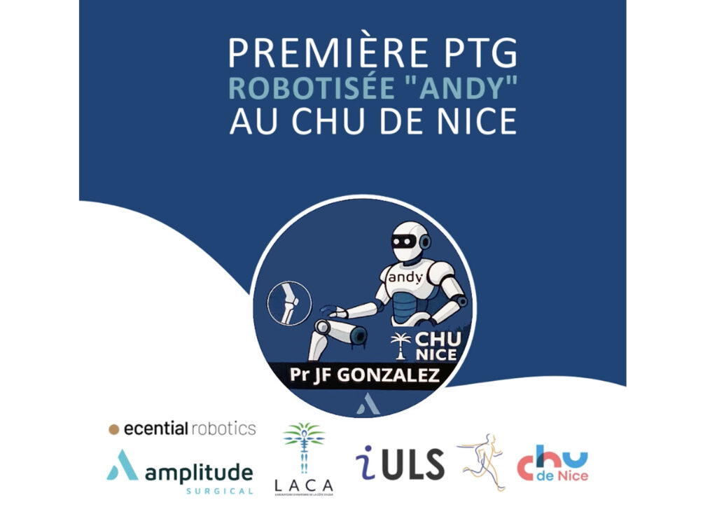 Première PTG robotisée avec Andy, robot de dernière génération, le 1er à coupe fémorale automatisée de fabrication française. Robot développé par les sociétés eCential Robotics et Amplitude, un bel exemple de partenariat entre le monde industriel et le secteur public. Cette première mondiale marque une avancée significative dans la chirurgie orthopédique assistée par robot, au […]